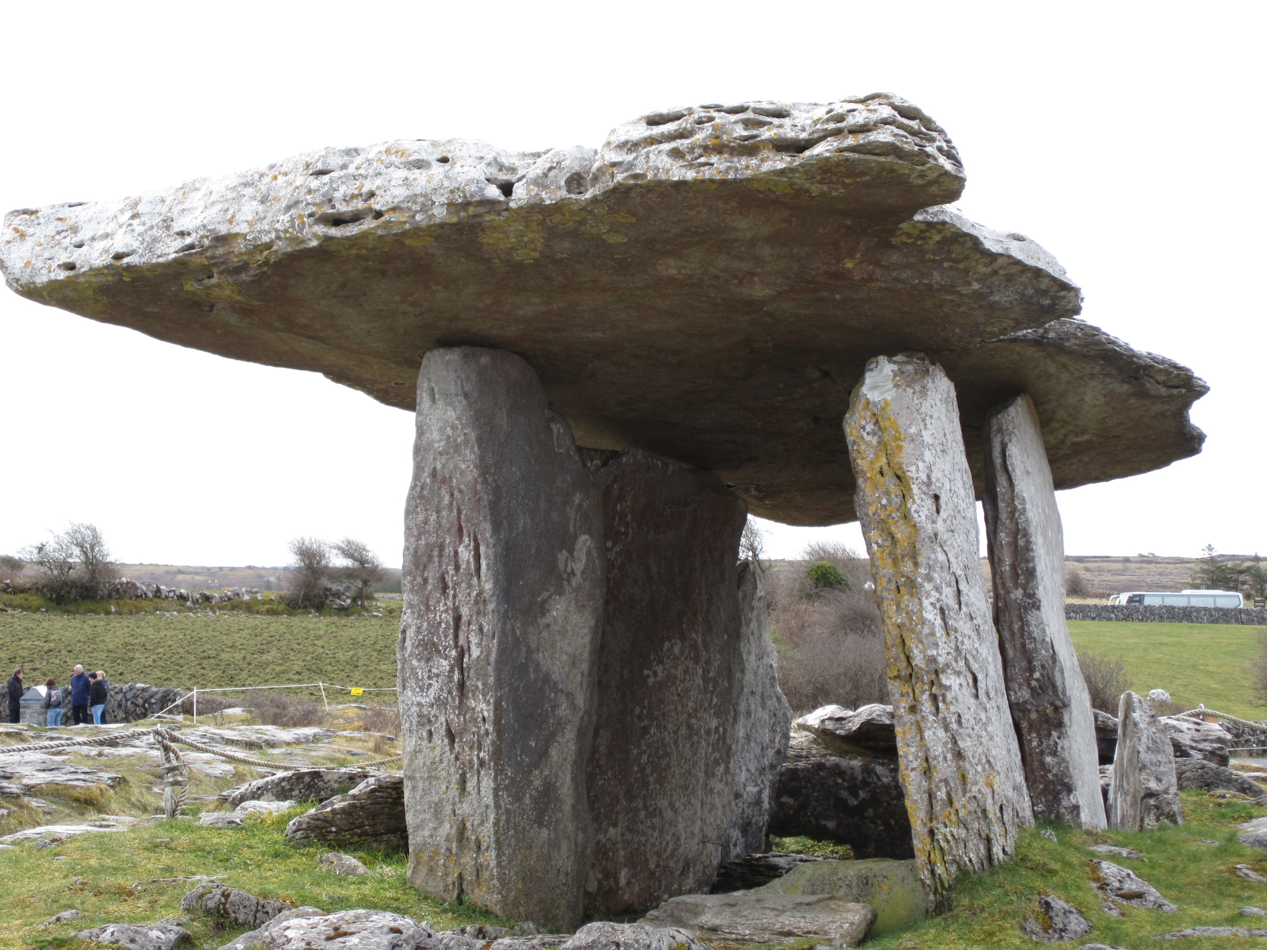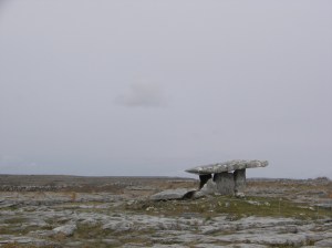 We parked our bus about half a mile from the Poulnabrone Dolmen, which left us with a surreal hike through this rocky, moon-like area known as The Burren.  A series of dry stone walls cut through the landscape, and a handful of informative signs helped us understand what we were looking at.  As we came around the corner, we saw what looked like a prehistoric garage.  That’s be best way I can describe it, because it actually looks like a place where Fred Flintstone might park his Lincoln Rockinental.  (Like what I did there with the Flinstone car/rock thing?)