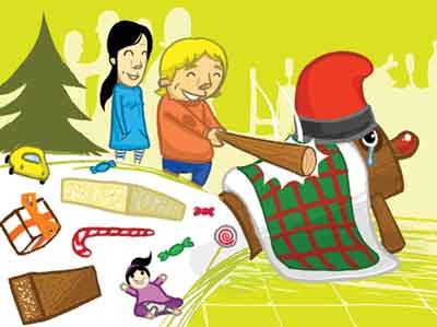 There are no words that I can put here that are funnier than the image. It's really a log pooping out presents 'cause kids with a stick are demanding it to. Seriously.