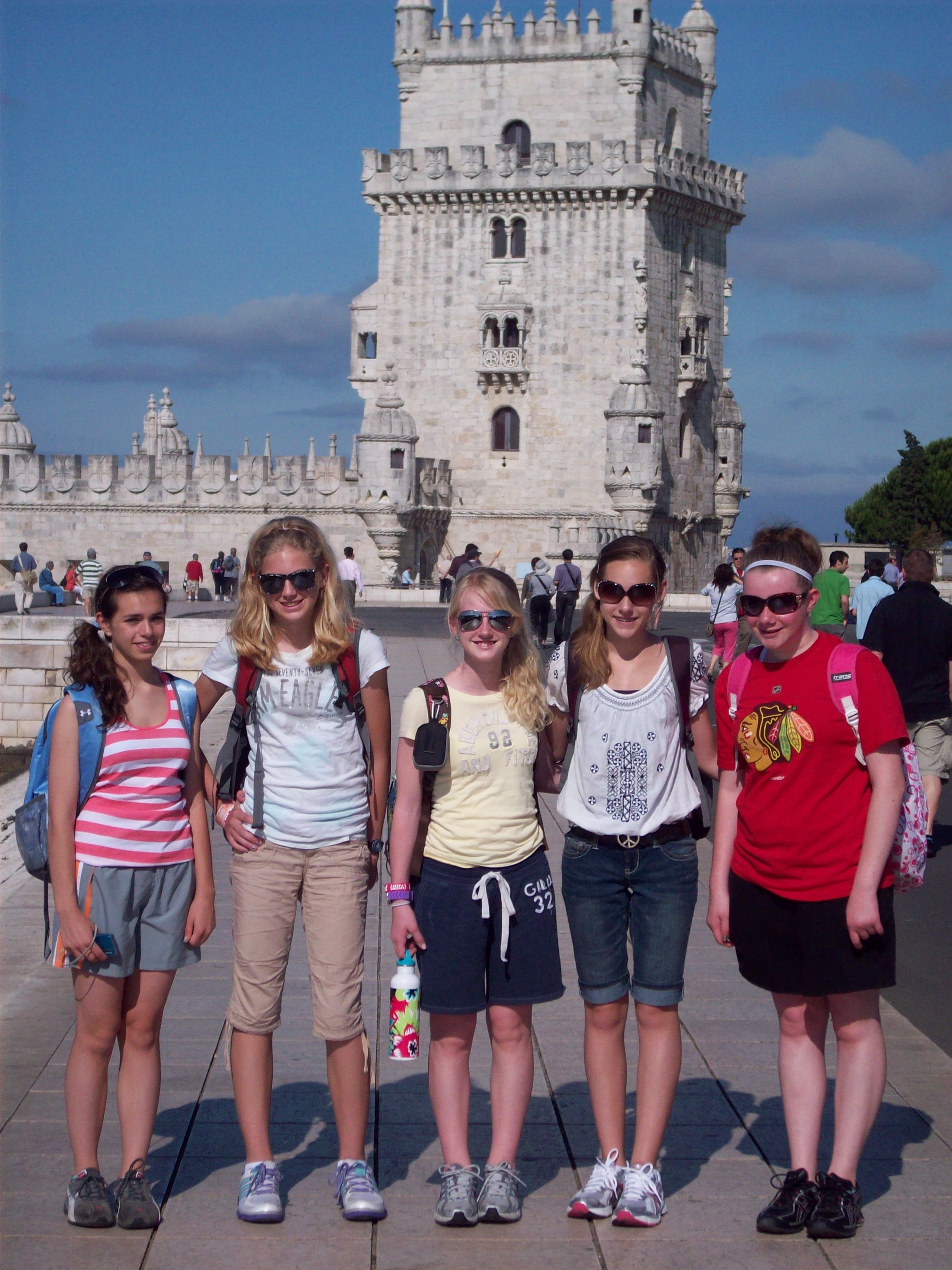 Minooka girls in front of the Belem Tower in Lisbon, Portugal