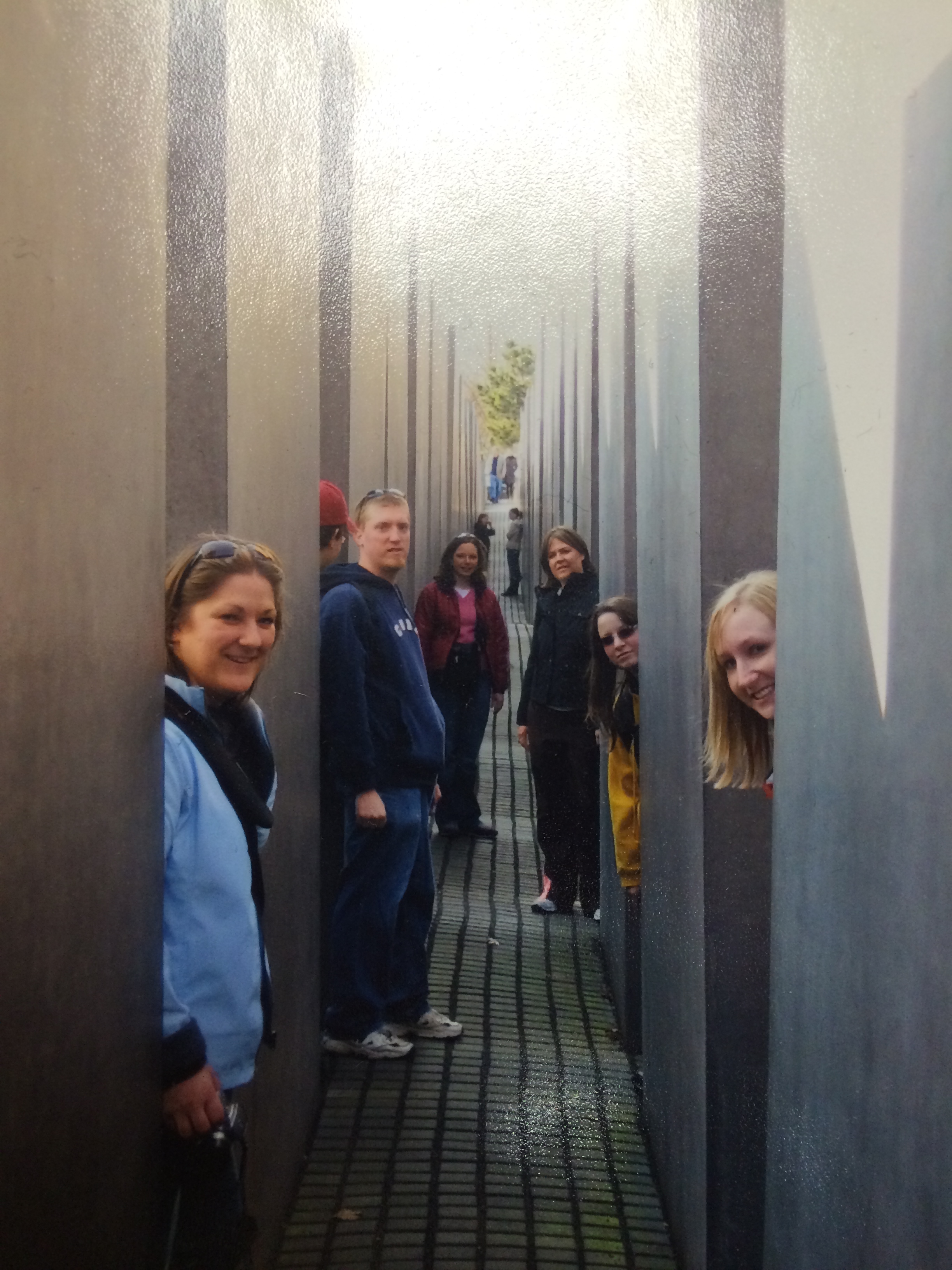 Running through that grid, with the varied heights of the pillars and the cobblestone paths rising and falling, unable to see around the corners, never knowing if someone would pop up in front, alongside, or even behind you, was intense. You began to feel claustrophobic and paranoid. I found myself nervous with every step I took, quickly separated from my group, and unable to tell where the “bad guys” were coming from. I’d see them one second, down an aisle 100 feet away, but you could never tell where they’d catch up to you again. The kids felt the same way, and when we all emerged from the memorial many of them claimed to have a better understanding of how the Jews in Germany must have felt in the 1930s and ’40s.