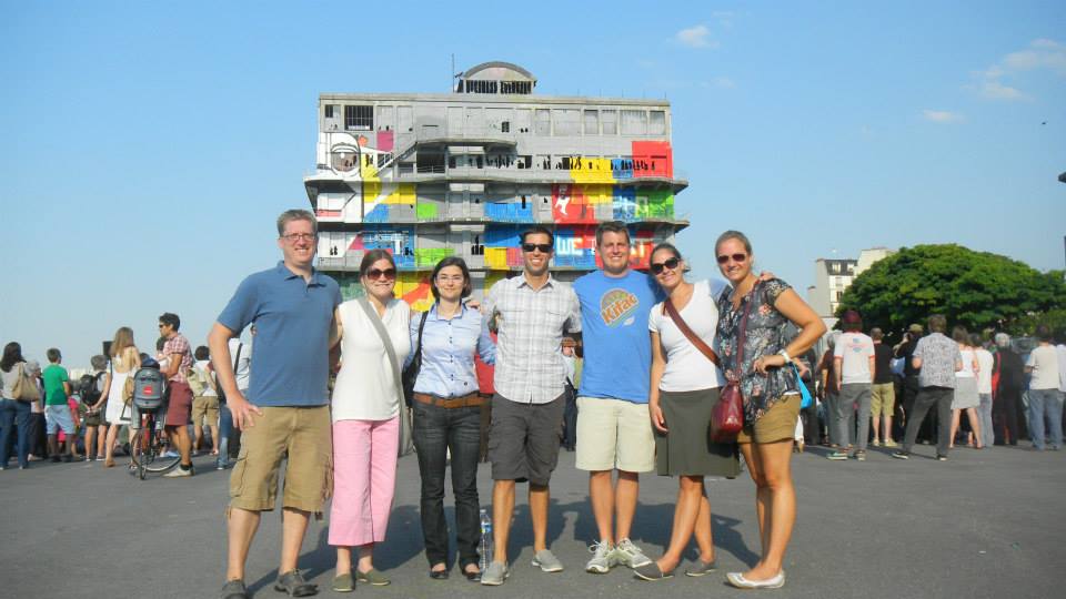 Mr. C in Paris with his friends from EF Tours. Behind us was a performance art group doing something with trampolines. It was… performancey and arty.